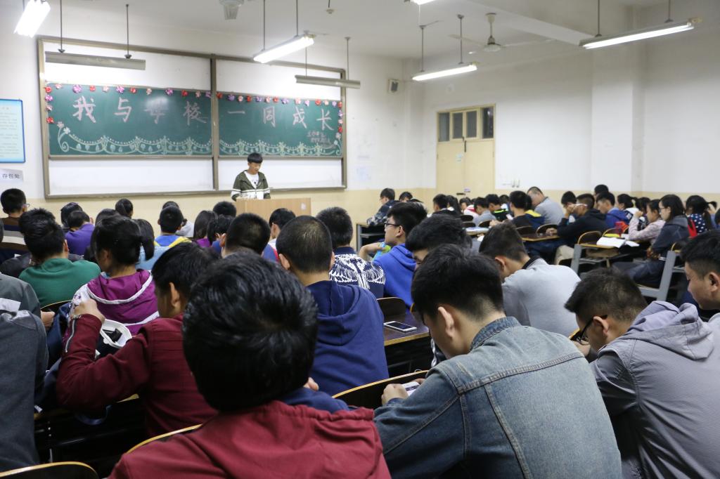 晚上七点,同学们一同聚集在主教学楼0502教室,bevictor伟德国际1946团总支副书记朱宗贵发表了以“我与母校一同成长”为主题的演讲拉开了班会的序幕,班会期间各位同学踊跃发言,积极参与,争相配合,展示自己的才艺,在欢声笑语中抒发自己对母校的爱,表达对母校的尊重。最后在团总支副书记朱宗贵的总结发言下,这次班会划上了圆满的句号。