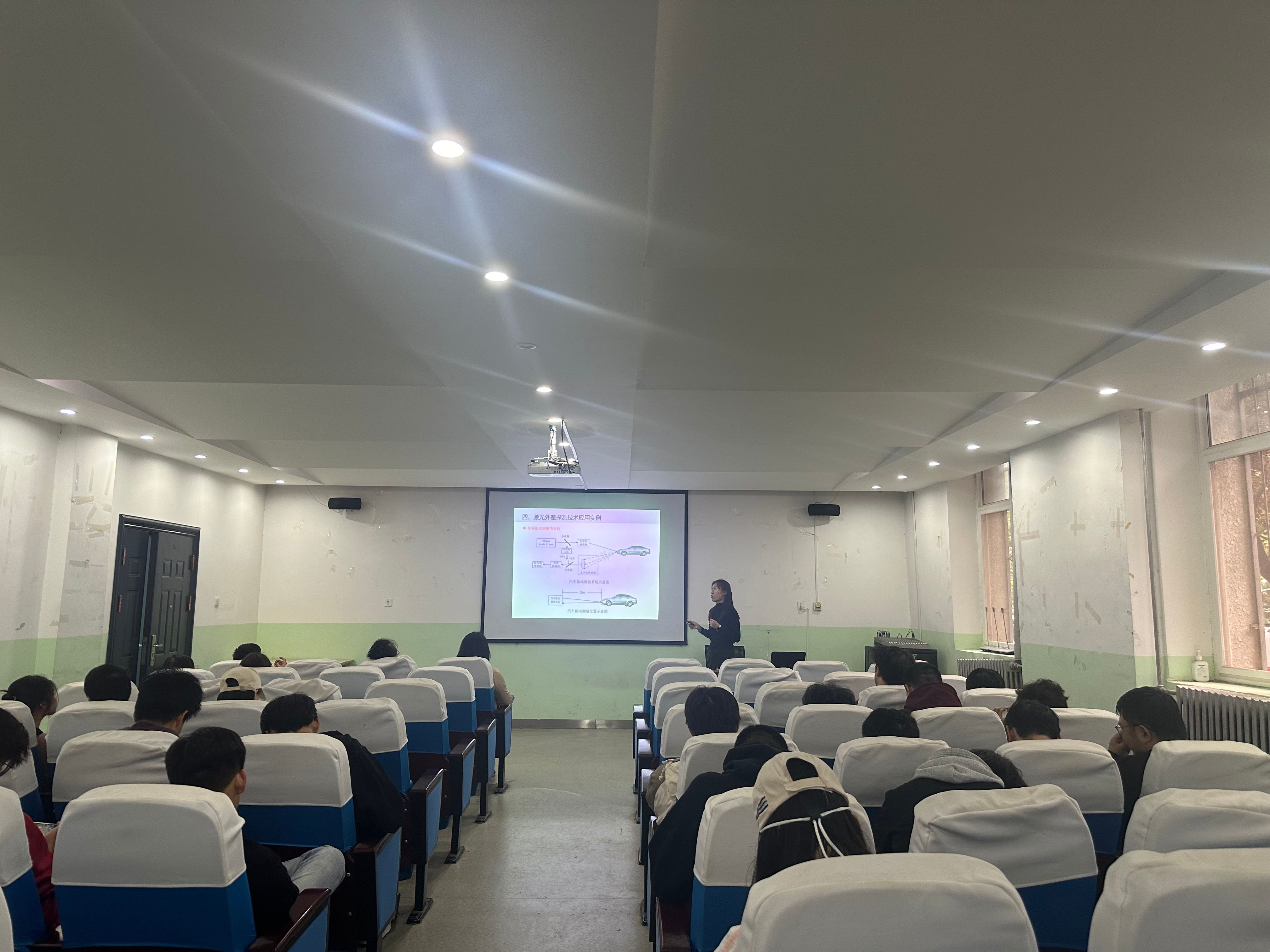 党文佳博士报告题目为《激光外差探测技术研究》,主要介绍了光外差探测技术,详细阐述了目标表面粗糙特性对探测阈值的影响以及光外差探测在激光雷达方面的应用等。党文佳主要从事相干光通信、激光雷达、光纤激光技术等相关研究,她的讲解将前沿技术与应用场景深度结合,为在场师生呈现了光学工程领域的创新图景。