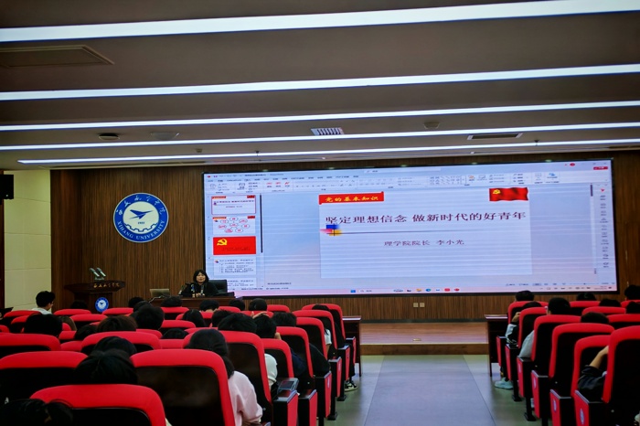 韩慧蓉以“中国共产党党史”为核心分享感悟,讲解了中国共产党的艰苦奋斗历程,清晰阐述了革命先辈的革命理想和精神支撑,重点介绍了党史中的里程碑事件,勉励新生锚定成长目标,努力成长为堪当民族复兴重任的理学人才。