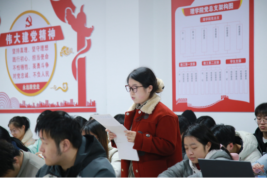 大会严格按照党组织接收预备党员的程序进行。会议伊始,组织委员王向阳报告了到会党员人数,符合规定要求。李扬领学了《中国共产党章程》和《中国共产党发展党员工作细则》中关于发展党员的相关规定,强调规范严谨地做好党员发展工作。随后,罗泽宇、王子翰等13名发展对象逐一宣读《入党志愿书》,向党组织详细汇报了对党的认识、入党动机和主要社会关系情况,以及需要向党组织说明的问题,表达了强烈的入党愿望和坚定的决心。各位入党介绍人在汇报完后逐一介绍了发展对象在培养考察期的思想、学习、生活等方面的现实表现,并就是否同意其入党表明了意见。