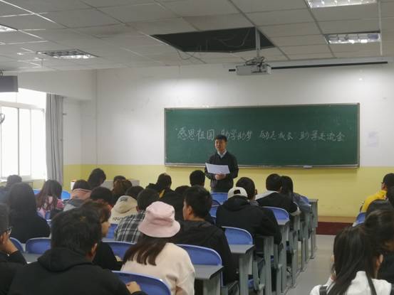 首先,杨陈东老师介绍了高等学校学生经济资助政策,从资助范围、资助标准、申请条件、申请时间、发放时间,这五个方面依次进行了详细的讲解。就今年与以往助学金评定的不同之处,向同学们一一做了解释。其次,他希望大家就评定程序多提宝贵意见,使国家资助送到最需要的同学手中。最后,杨老师以亲身家访的经历,鼓励大家要感恩党和国家的关爱,努力学习,争取学有所成、回馈党和人民。