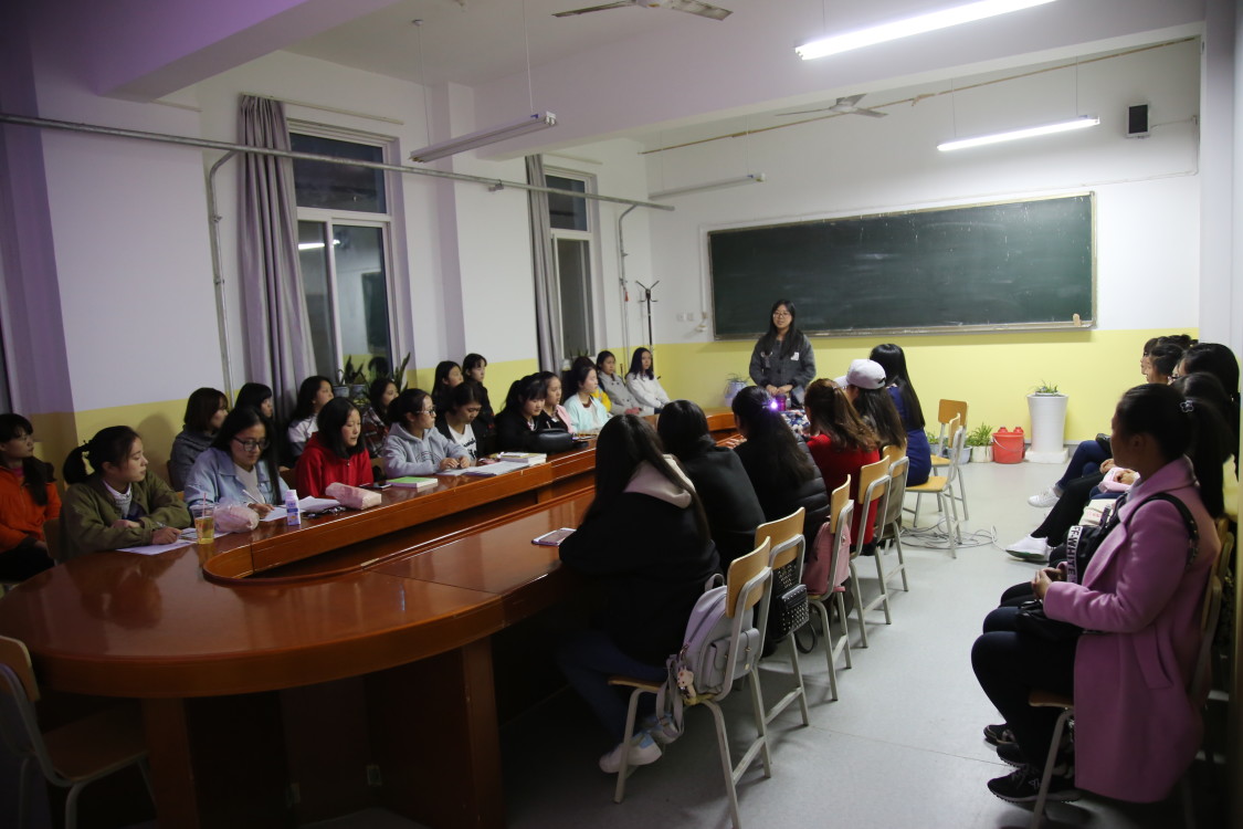 2017年10月17日晚,bevictor伟德国际1946于教学南楼428教室举办“大学生就业技巧”培训。本次培训由bevictor伟德国际1946学生李钰蒙、黄鑫主讲,bevictor伟德国际1946全体女生参加了此次培训。