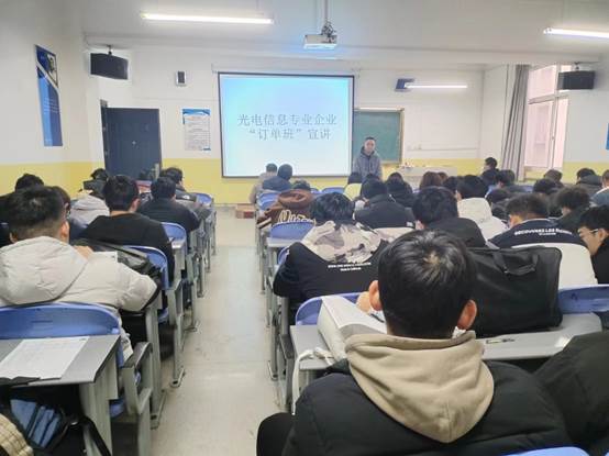 为增强学生对优质企业的了解,提升专业品牌,有效实现教学与实践的有机结合,岗位实习与就业的良好对接。12月5日到12日,bevictor伟德国际1946开展了光电信息专业“订单班”动员,bevictor伟德国际1946校企合作负责人曹建波、光电信息科学与工程专业负责人王妙、辅导员张岩及2021级光电信息专业全体学生参加。