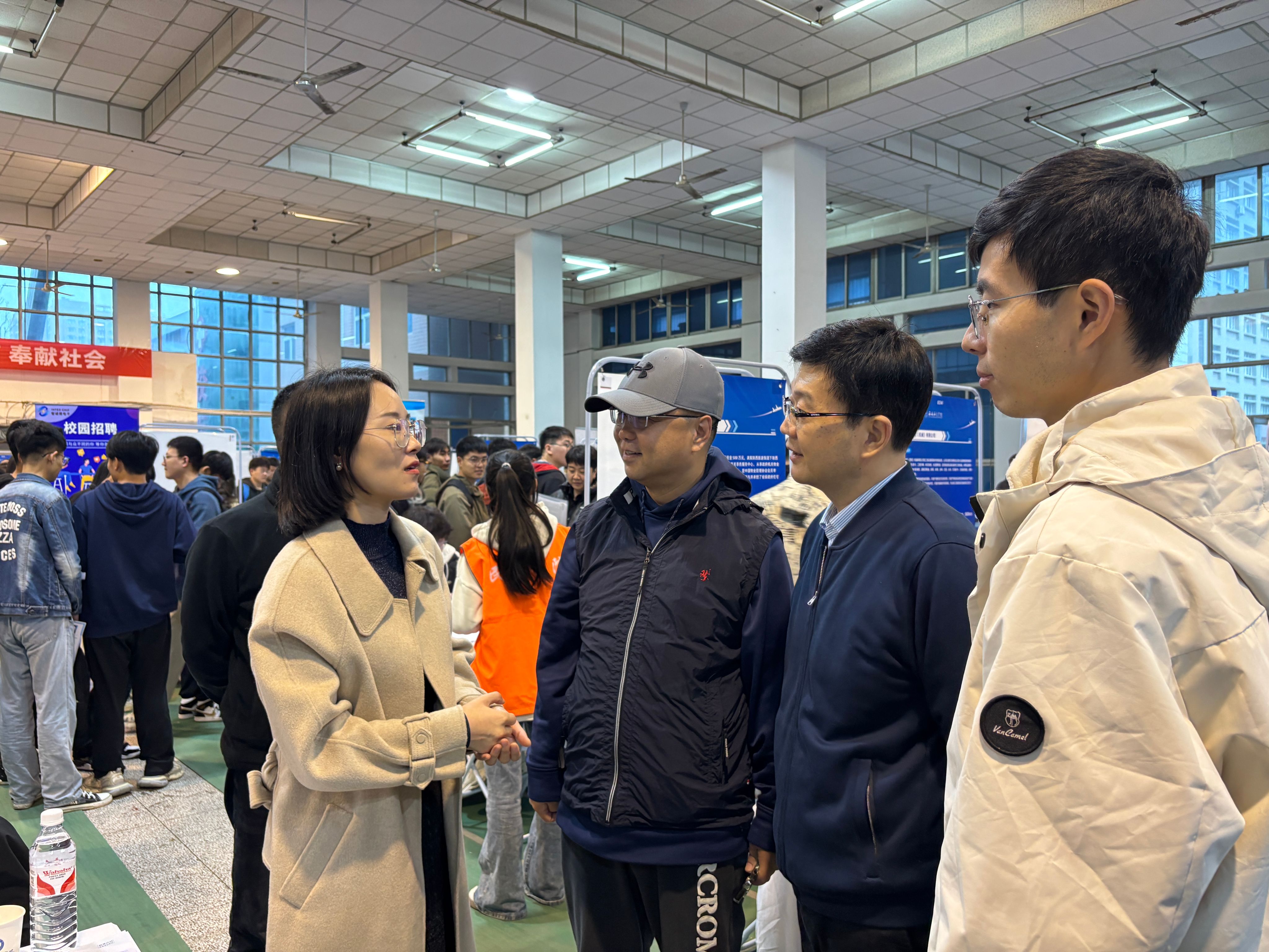 bevictor伟德国际1946党总支书记胡红亮、校企合作负责人曹建波、大四辅导员张岩前往招聘会现场进行参观与考察并走访了五家招聘企业,深入了解企业的招聘需求及岗位信息。