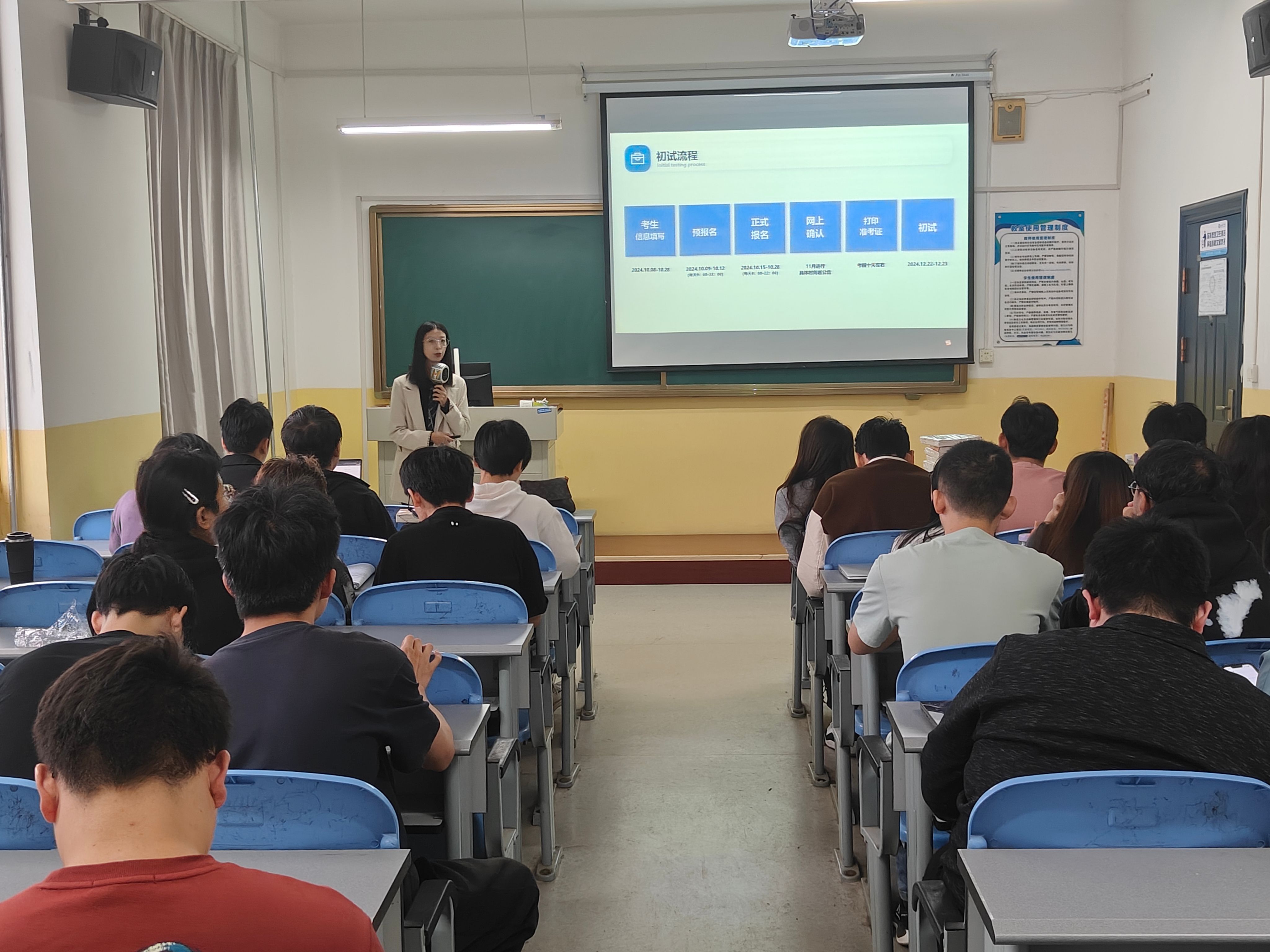 讲座伊始,张岩对考研网上报名的重要环节和注意事项进行了深入浅出的讲解,强调了考研网上报名的时间节点,提醒同学们务必密切关注,以免错过报名时机。接着,孙睿琦详细介绍了考研报名流程,包括登录研招网、实名注册、填写考生信息和报考信息等步骤。同时,着重指出报名过程中的关键注意事项,如照片要求、信息准确性、招生简章要求等。在交流互动环节,同学们积极提问,对于学生存疑的地方,老师耐心解答,深入解释。