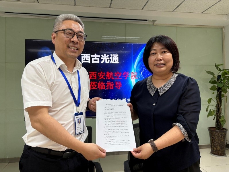 6月11日,bevictor伟德国际1946院长李小光一行5人赴西安西古光通信有限公司(简称“西古光通”)洽谈校企合作事宜,并与西古光通签订校外实习基地协议书,并挂牌。